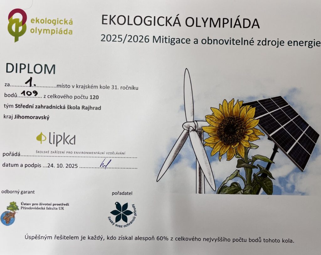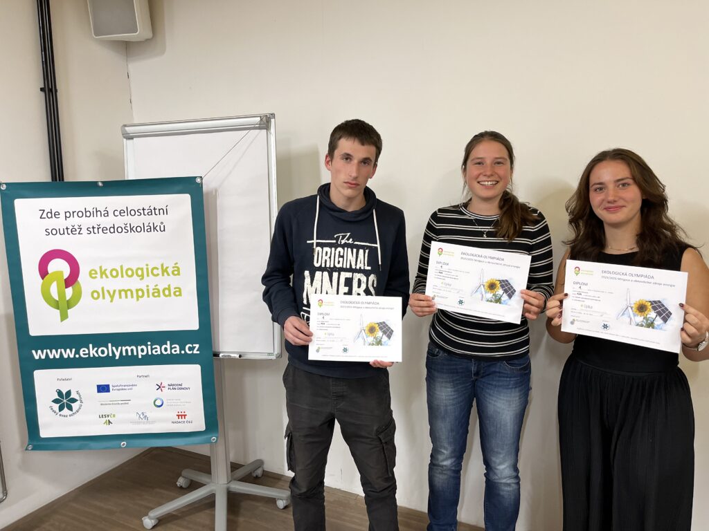Fantastické 1. místo a postup do celostátního kola v ekologické olympiádě slaví tým ve složení Lada Froncová, Martina Dvořáčková (obě ze třídy 3.PL) a Adam Bureš (4.E).
