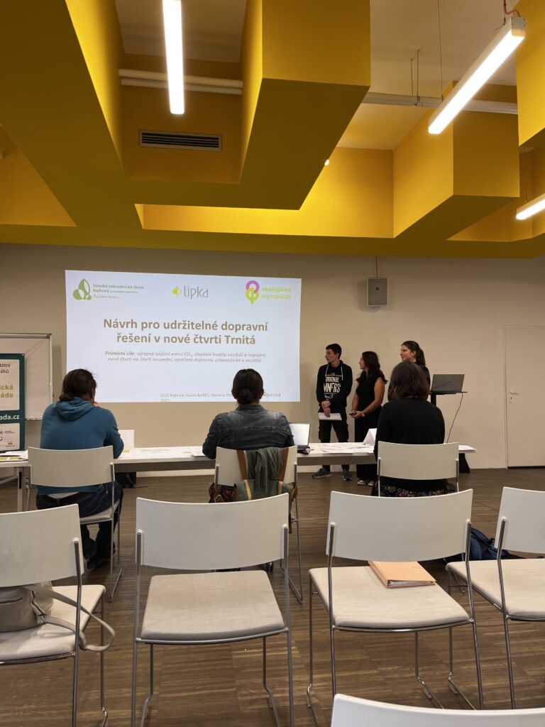 Výborný výsledek z „poznávačky“ i teoretického testu završili povedeným praktickým úkolem na téma „Návrh pro udržitelné dopravní řešení v nové čtvrti Trnitá“.